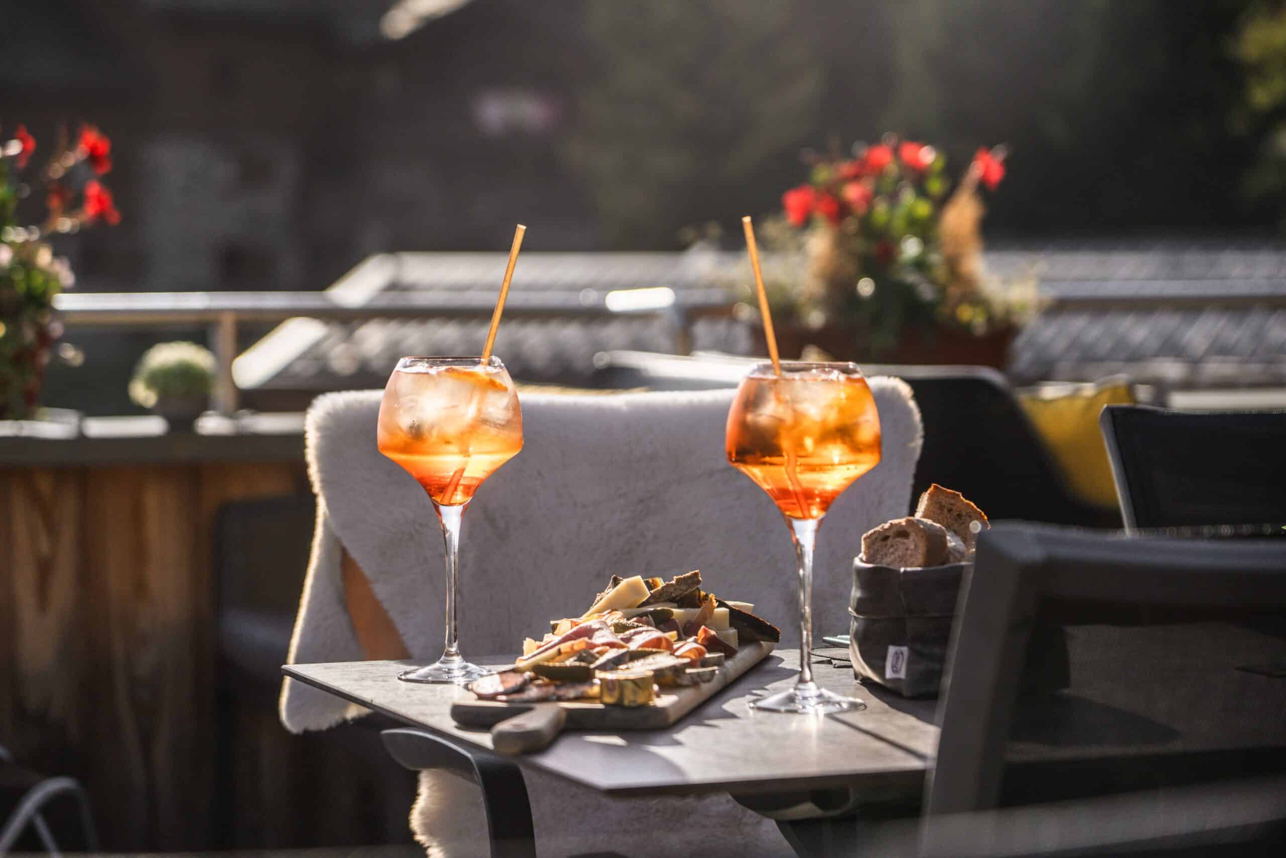 In summer, enjoy a snack on the terrace or catch the last rays of sunshine while sipping a glass of wine or a house cocktail served by our Barista.